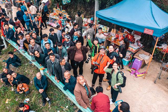 这个山头能看到整个寨子,以层层叠叠的房屋为背景拍照,既干净又有特色。我们用航拍拍了全景,还是挺震撼的。岜沙的古木和梯田也是很有特色的,一年四季皆有不同景色。