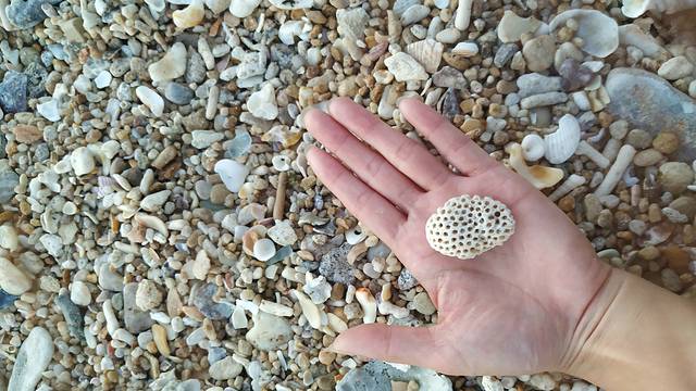 步行到一片沙滩,这里都是贝壳、珊瑚和各种形状海螺的碎片,都被磨去了棱角,和一堆小石子混合在一起,在这里可以发现一些可爱的小东西。