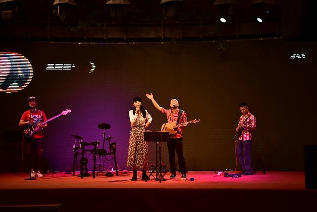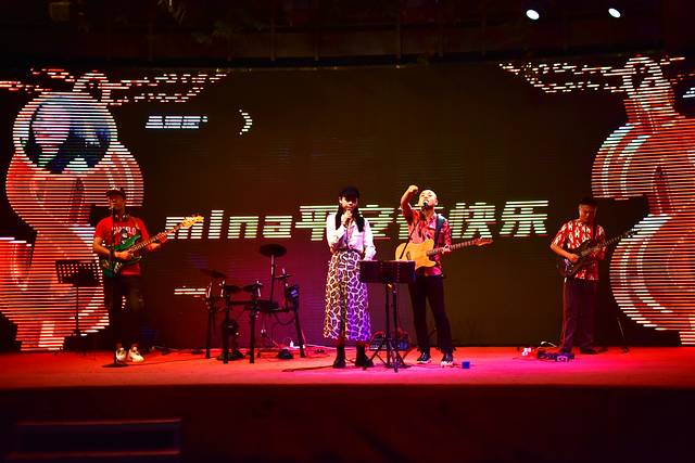 海棠68环球美食街的开放舞台,逛个街可以听现场乐队演奏。