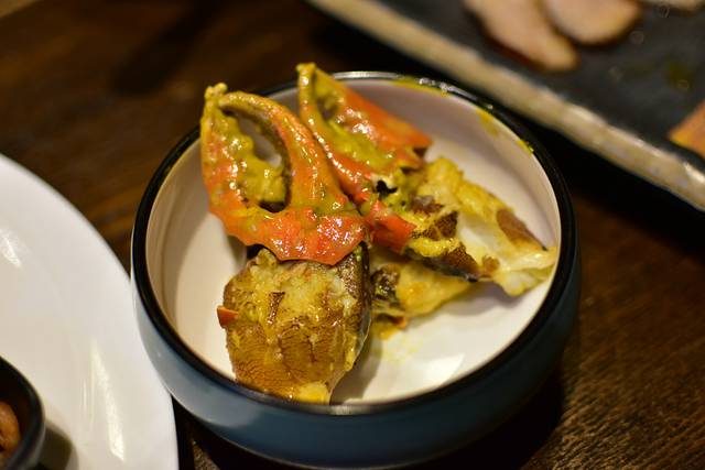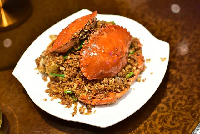 避风塘和乐蟹-采用传统港式烹饪手法,融入风靡香港的桥底辣蟹做法,结合海南本地和乐蟹,香味浓烈,肉质鲜美)源自香港,创新海南。吃起来香喷喷,很入味,特别是大钳子里面的肉肉,厚弹饱满不腻人。