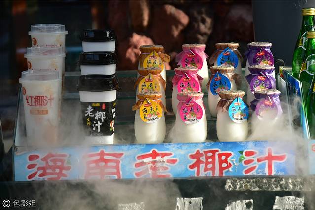 卖椰汁的小商铺,雾汽撩人