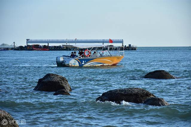 湛蓝的海水,黑色的礁石,还有欢乐的游客,好美的画面呀!