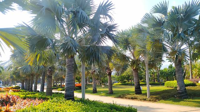 在阳光灿烂的日子里,走在椰林中的小路上,特别放松的时刻。