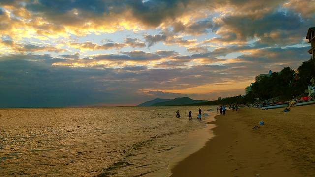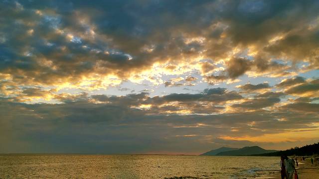 曾经看过很多日落,三亚海边的日落,也没让我失望,在海边赏日落,有海风,有软软的沙滩,最动人的是有柔柔的金色的阳光。
