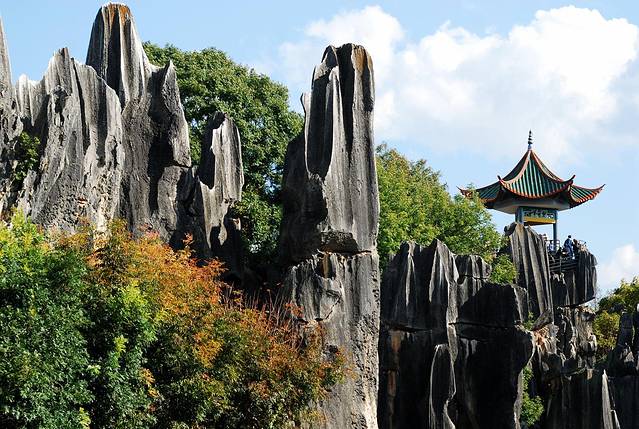 石林中的一切都感觉到那么的奇妙和不可思议,看起来都是一堆“石块”组建在一起,却里面依旧生机勃勃,不仅仅是绿树如茵,更有众多鲜花汇聚成为海洋,还有湖泊流淌在这里面,时不时还会有鱼儿窜出水面。
