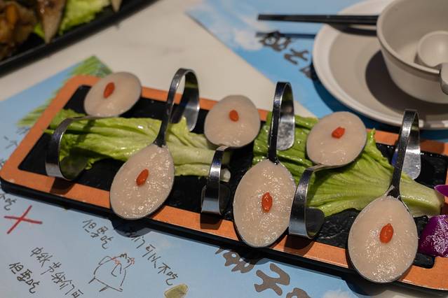 4)手打虾滑:非常的Q弹,而且每一颗都含有非常饱满的虾肉。