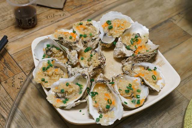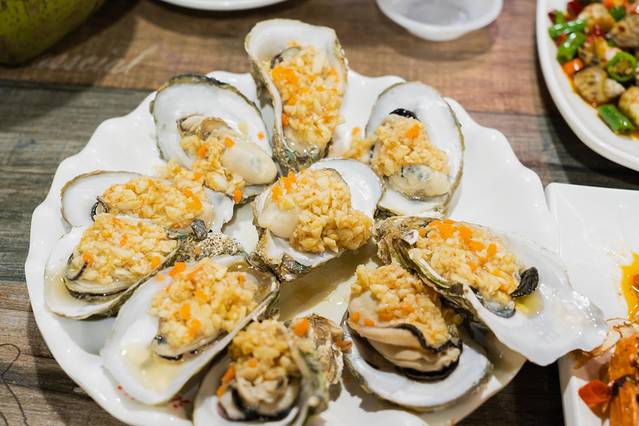 4)蒜蓉蒸生蚝:个头很大,吃起来很满足,新鲜的蒜香和生蚝的肉质融合很好!
