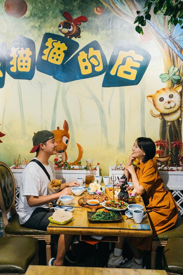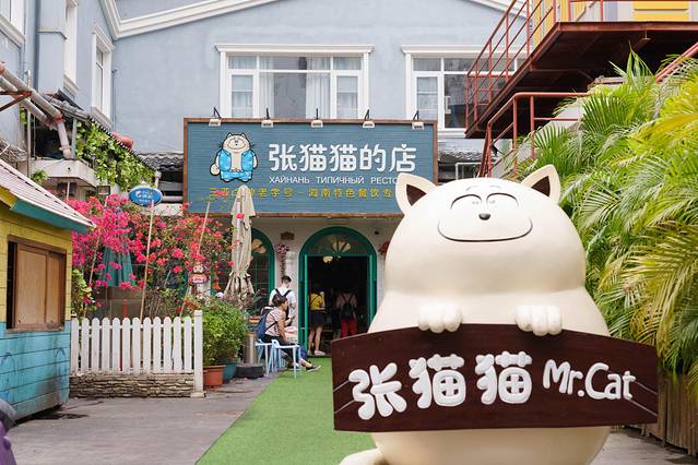 张猫猫的店是我在三亚发现非常有童真的一家店,就在夏日百货旁边,因为去的比较晚,所以还要排队,每天的人气都很爆棚,进去就可以看到非常多童真的元素,特别像一个童话世界,里面还有一个大树,可以在树下就餐,我们就选的树下的一桌~墙上还有一些涂鸦,蘑菇屋、森林主题,包括他们的菜品摆盘也是跟装修一个风格的!