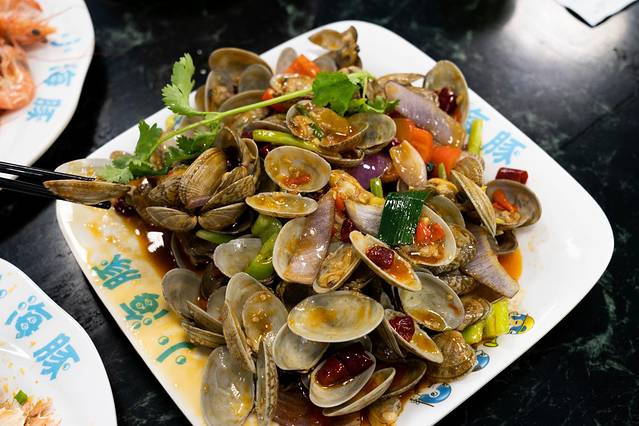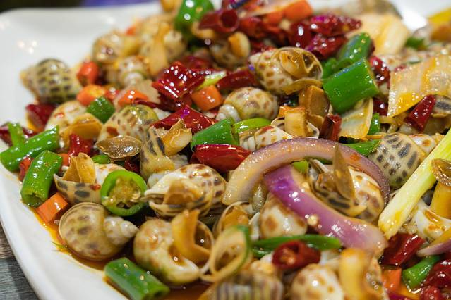 3)爆炒花蛤螺:非常大一盘,而且味道是川式做法,咸香微辣,我超爱吃花蛤螺,所以吃的非常的满足,肉质滑嫩,清理很干净没有一点沙~