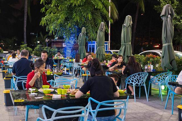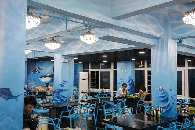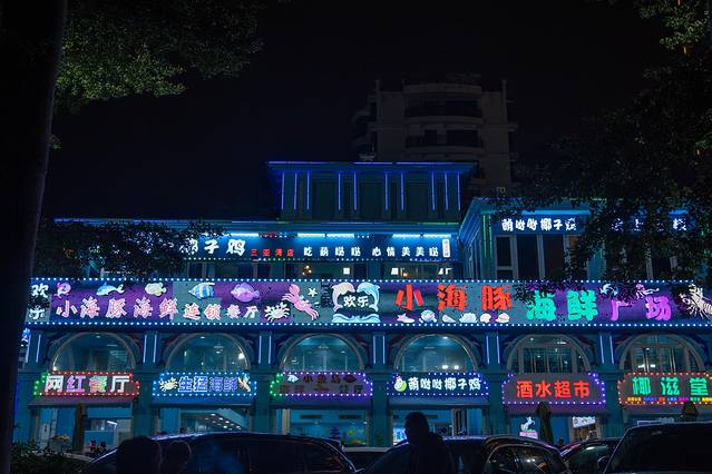 小海豚海鲜也是三亚比较大的连锁店,有非常多的分店,大家可以根据自己的旅行目的地来选~我们去的这家是三亚湾店,就在椰梦长廊附近,当时是在椰梦长廊拍完照之后顺路就走过去就餐的,店外面放了很多的桌椅,可以在外面就餐,吹着海风吃,也可以在室内就餐,外面晚上还有人现场唱歌,环境和氛围都还不错!