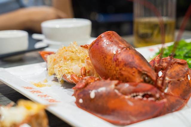 3)蒜蓉蒸大龙虾:是我们每一次必点的王牌菜,大龙虾的肉质非常的饱满,而且清蒸是最能检验海鲜品质的,所以龙虾我们也是必点。蒜蓉粉丝加上龙虾肉一口一口根本停不下来,超级满足!