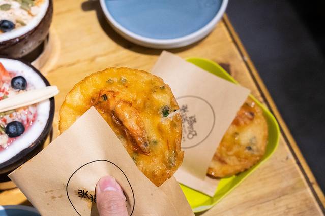 2)酱爆虾饼:是相当惊艳的一个餐前小吃,虾饼就是用面粉包裹油炸的~