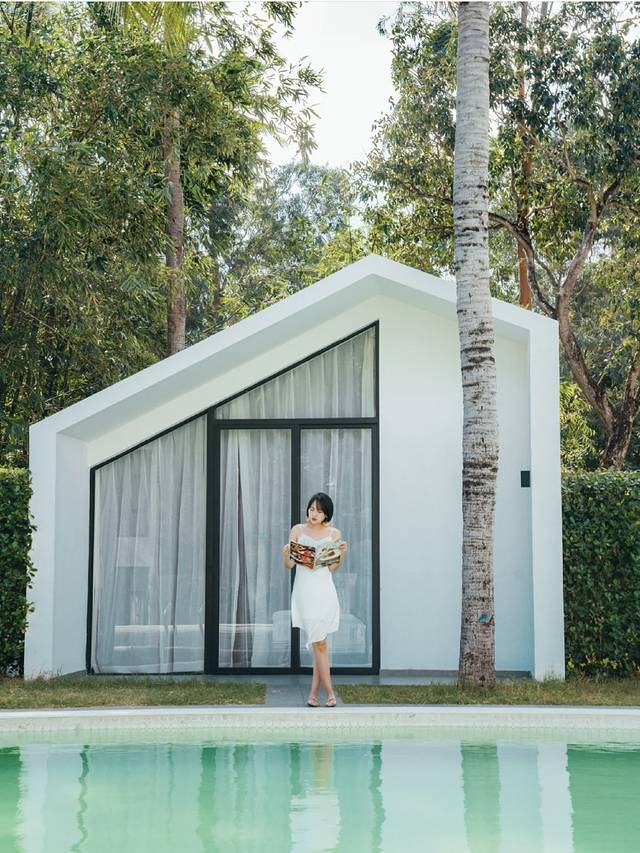 我觉得久悦生活美宿的魅力在于给了我很舒服的休假感,在这里拍照也不赶,就慢慢享受在这里的时光~从踏进门的第一刻就发现还有书柜!真的很用心啦!此外用心的地方还有为客人准备的拍照道具!比如杂志、椰子、帽子、长椅都是可以用的,这样自己都不用单独带过来啦~除了泳池还有一片椰林,两种风格任你挑选!如果想要拍整个泳池的照片,可以到大厅二楼拍!轻松get!