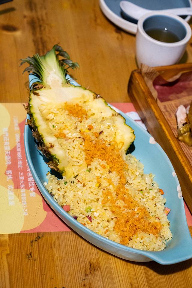 1)海南菠萝饭:人气top1必点,上面添加了肉松、蔬菜丁、虾仁,而且分量很足,菠萝非常的新鲜,与米粒的融合也很好,不甜也不腻,非常的开胃!