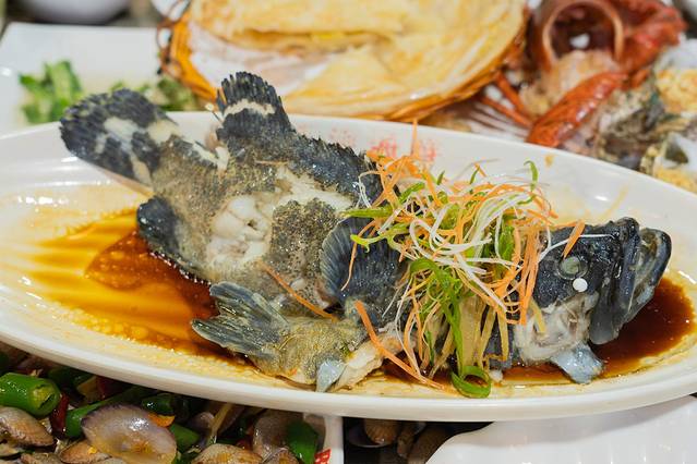 4)清蒸石斑鱼:非常非常好吃,肉质非常鲜甜,很嫩,一定要趁热吃,我们每一次吃都会第一个消灭它!很适合小朋友的一道菜,口味不刺激,也保留了鱼肉的精华!