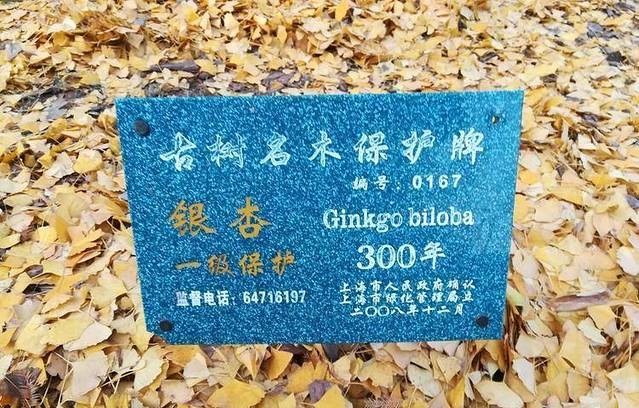这棵古银杏,胸围2.95米,树冠15.8米,树高22米,树龄312年,位列“上海古树名木保护牌”第0167号,享受一级保护待遇。