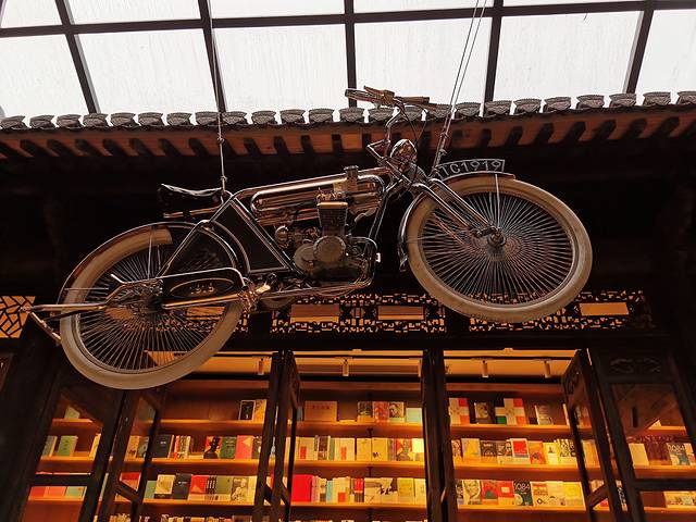 占川书局挂在半空的自行车车,好酷炫