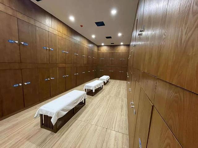 更衣室很大,左右都有,每边两排,很干净,旁边就是淋浴室,方便。空调很足,脱衣物时不会有温差。