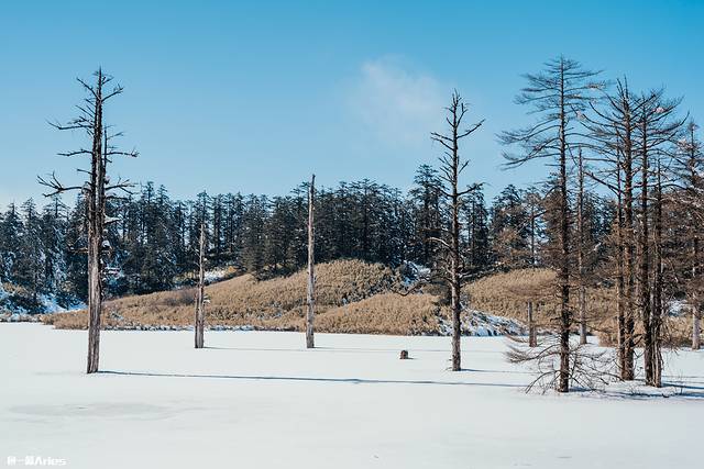 9:30-10:00乘坐观光车前往鸳鸯池观赏冰湖雪景,能坐观光车就坐,特别是带小孩和老人的朋友,别把耍雪的激情消磨在走路上,想玩雪就把体力留给象尔戏雪场。