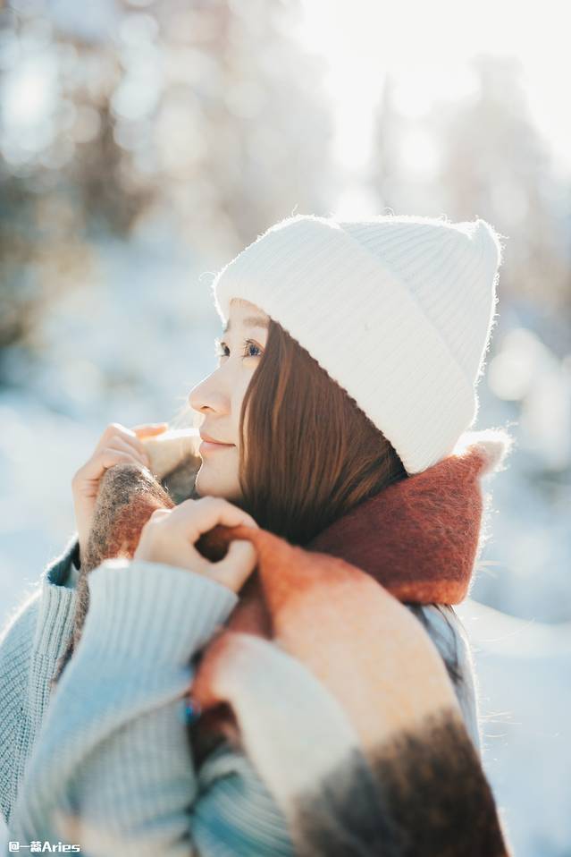 逆光或侧逆光,利用大光圈的定焦镜头或者相机里的人像模式,可以制造出景深;被阳光照亮的雪堆拥有奶油一般的虚化,非常出效果哟!