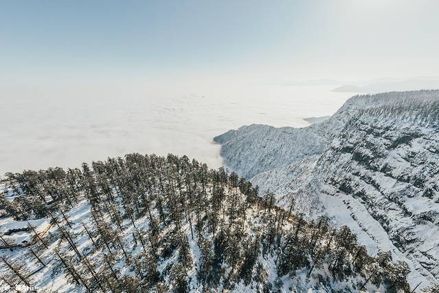 冬季的瓦屋山既有豪放大气的北国风光,又有婉约秀雅的南国情调,仅仅是山脊下那一抹透亮的云海,就足以令人沉醉其中。