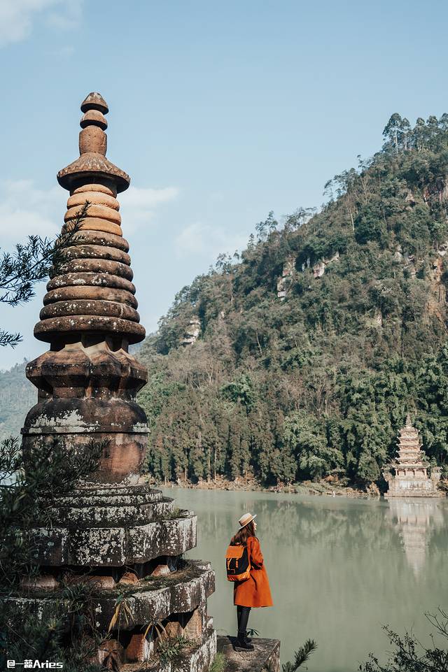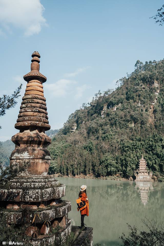 高高低低的佛塔分散四处,或依水而居,或背靠悬崖。