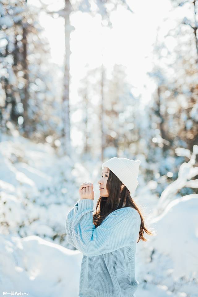 若是想要拍摄一些温柔纯净的雪景照,光线一定要控制好。