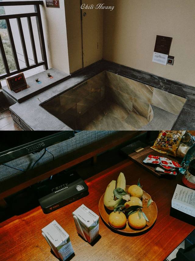 ♨️入住有水果牛奶赠送,附带整个度假区游玩指南,整个房间的风格都是高级的原木风,采光特别好,走廊中庭也很有格调