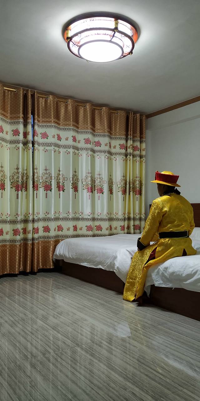 办好入住手续后服务员就把我们带到皇帝房,还送上了特产,里面的矿泉水,饮料,都是免费的,房间很大,装修不豪华但很干净很舒服。