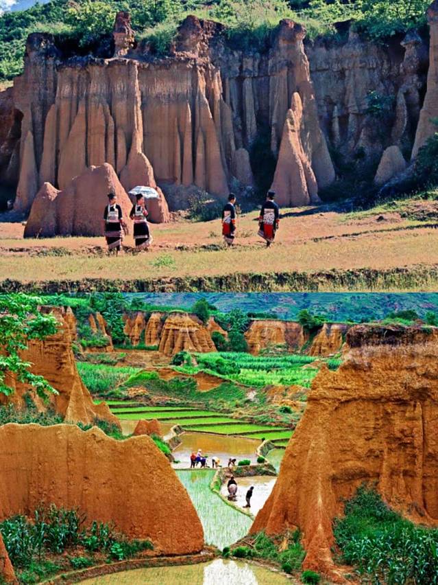 这是自然界送给人类的艺术品,荒漠和高耸入群的巨石让人肃然起敬,土林与路南的石林 、陆良的沙林并称云南“三林”。