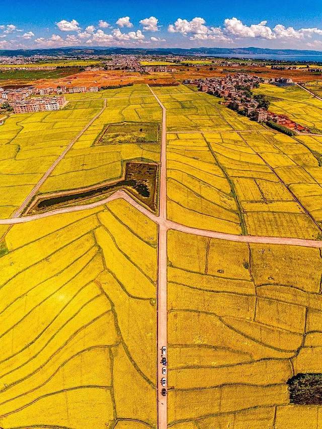 在去往抚仙湖的路上,你还会收获一片惊喜。澄江县马房村的路上,会遇到一片金色的海洋。一旁是碧波荡漾的抚仙湖,另外一旁是随风而动的金色波浪,衬着属于云南的澄澈蓝天,如诗如画。