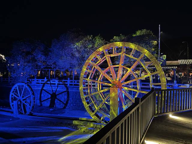 溪水流动,水车转动,神奇光影照在水车上,神秘感十足!
