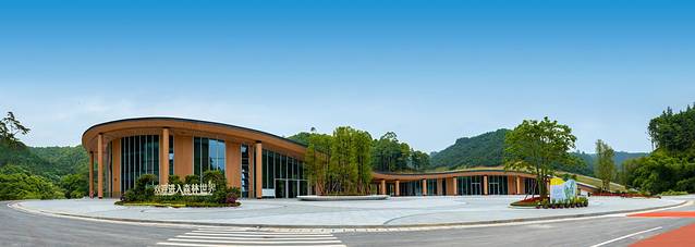 游客中心的外形设计得很别致,弧形的建筑藏在山林之间,给游客的感觉温和而从容,难得的削弱了钢筋水泥建筑在山林里的突兀感。