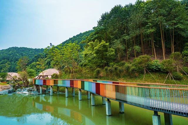 我觉得这个工坊的外形更像是个帽子,不过这个角度看过去,工坊的外形跟背后的山体外形轮廓真是相似,却也相得益彰,颇有意趣,还有一道彩虹桥。据说是真的有采摘蘑菇的体验活动的,但是我没体验。