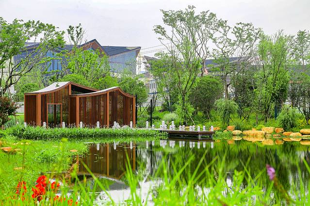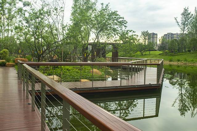 建筑群旁边就是一条小河,细长细长的,波涛碧绿,突然就明白了为什么公园的名字叫做十里槠溪,公园不大,周围也很多楼盘,感觉日常晚上吃完饭来这走走也挺不错的。