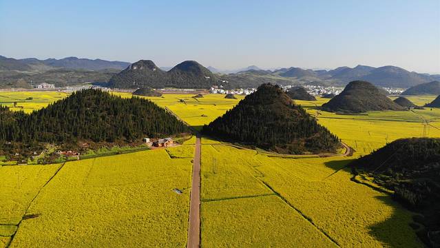 罗平的主城在每年的花季中就像在花海中浮沉,当你爬上白蜡山去俯视这座被花海包围的城市,你会看见金黄一片附近会有些星星点点的民居,你可能会误以为这些村落是不是海市蜃楼,不敢你相信眼前看见的一切。