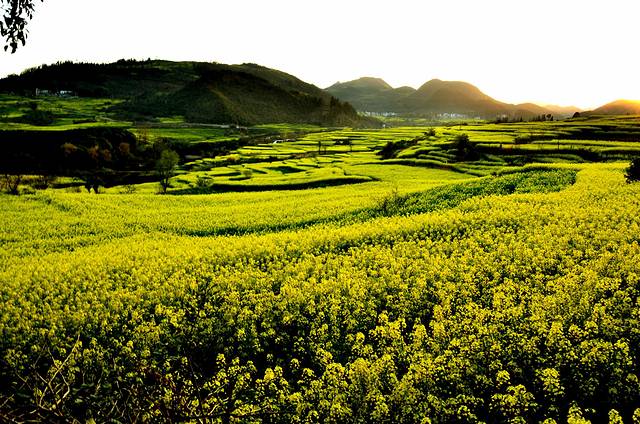 每年的春季都是油菜花开放的季节,一到花季将近80万亩的油菜花竞相开放,能绵延数十公里,好像是金色的麦浪,微风吹起就像海波浪一样,无人不感叹罗平是最为奇特的海洋。