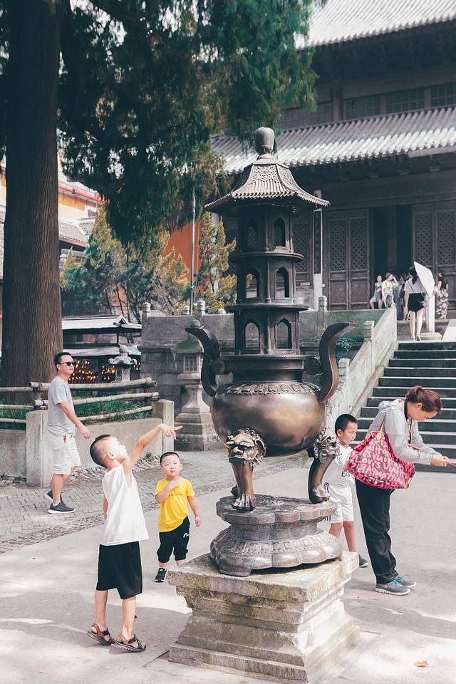 因为免门票了,寺院里显得比以往更热闹了许多,老老少少纷至沓来,给这座千年古寺带来新的生机和活力。有虔诚的信徒来朝拜的,有替家人许愿的,也有亲子游玩的。