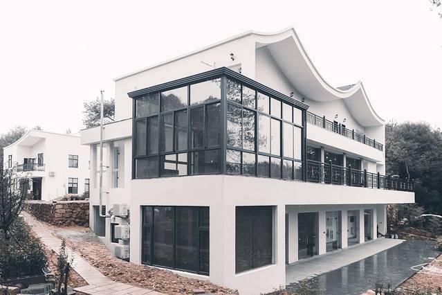 洗漱区域的窗帘是全自动式的,部分房型还配备了私人浴缸。酒店共设有数十余间客房,庐舍、庐居、庐庭三款不同房型,每一款都是不一样的入住体验。位于一楼300平方米的多功能厅可承接婚宴、各类主题宴会,可容纳300人圆桌婚宴、会议,配备齐全的LED电子显示屏、音响设备。因为17年才开始营业,客房设施都很新,也比较先进齐备。