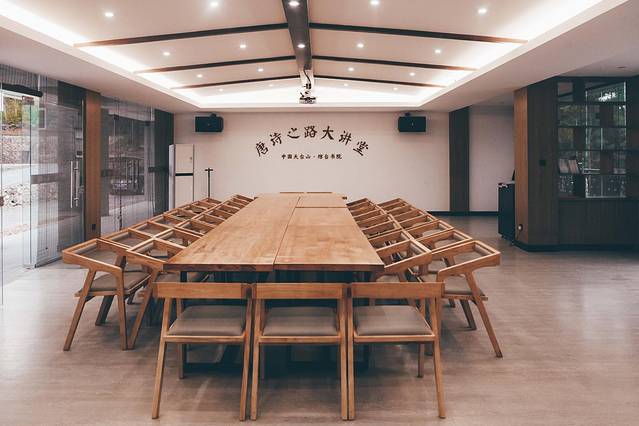 除此之外,酒店还有另一块僻静的场所,叫琼台书院。书院四面环山,环境清幽,空气清新,适合喜欢清静的住客,还有一处大讲堂可以做培训讲座。