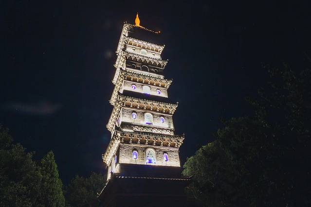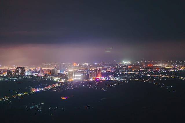 爬上了赤城山顶,也就看到了梁妃塔,山风习习,吹散了爬山的劳累,极目远眺,夜晚的景色尽收眼底。