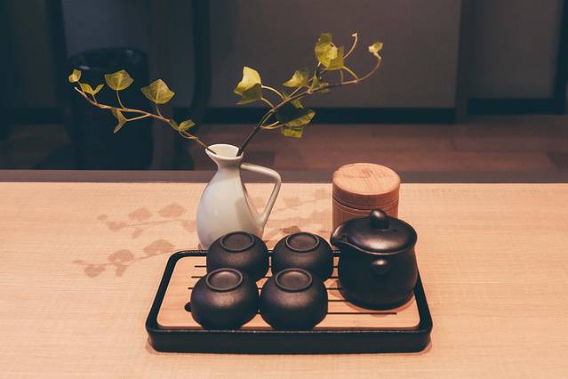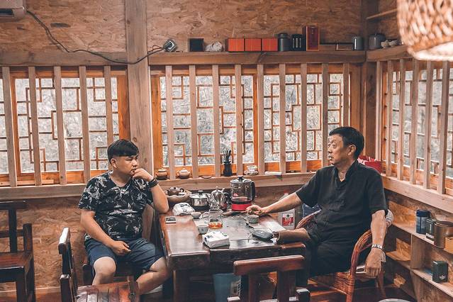 林间隐匿着一间茶室,泡一杯清茶,约上几个好友一个午后就这么度过了,惬意至极。
