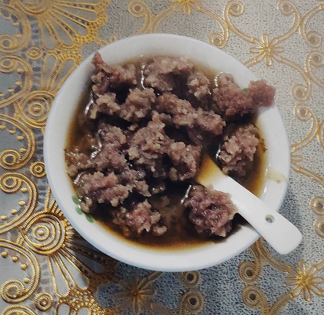 柘荣的当地小吃里有一道牛肉丸,和福州的牛滑、泉州的牛肉羹相似,都是将牛肉剁成肉糜之后和少量面粉混合在一起,揉成一个奇形怪状的东西,富有嚼劲。