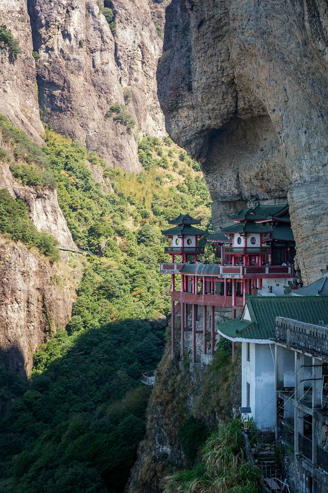 灵通山,在漳州的平和县,从市区开车过去要接近两个小时。这里这座修建崖壁之上的寺庙香火特别的旺盛,从景区停车场步行到这里需要1个小时左右,不过真的很值啊!寺庙完全是悬空在崖壁之上,络绎不绝的香客让这里平添了几分仙气,好似有仙人居住一样。就能在这里建一个这种庙出来,真的太牛了。而且这里不是模仿其他地方而后修建的新景点,而是闽南地区土生土长的文化与自然的完美结合的地方,感觉就很不一样,非常推荐来这里看一看,感受下闽南人的信仰的力量!