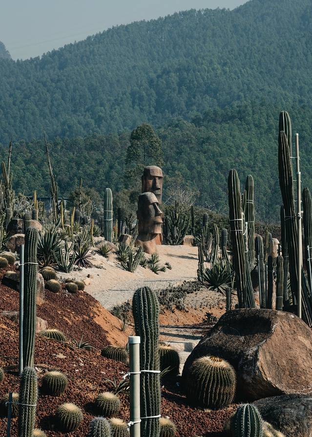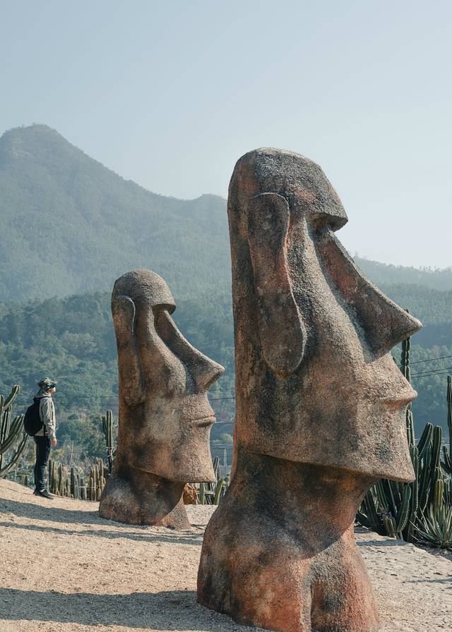 在漳州市区到龙海的中间有一个经常在小红书上出现的“仙人掌王国”,被当地的朋友戏称为“小厦门植物园”。这里据说是要开发成类似“复活岛”的那种感觉,距离开发完成还早着呢吧,大概有一片的山头被种满了仙人掌,然后修建了几个想要代表玛雅人的石像。在上次的福建环游里有去到漳州的火山岛,那里是模仿了纪念碑谷的风格,而这则是很努力的在模仿玛雅文明的那种风格而修建的一个人工景点。由于还没有开发完全,暂时还没有收取门票,不过相信看这架势未来应该门票不菲~可以趁早去打打卡。漳州除却各种好山好水的自然景观之外,感觉是一座特别网红的城市,有不少特别适合拍照的网红人工景点,因人而异吧,没有厚重的人为历史和壮丽的自然风光,但个人是觉得反正能拍出还不错的照片,而且比较小众没有那些热门景点的人头涌动的情况,挺适合周末还是短假的时候来散散心、拍拍照的。
