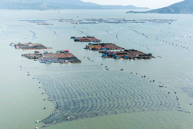 三都澳最为出名的是一个个漂在海上的海上渔排。成片的海上渔排组成的海上渔村是吸引许多游客到此一游的重要原因。渔排上一格一格的格子是渔民养殖的海产品,而渔排上的一层活两层的小平房则是许多渔民耐以生存的家。