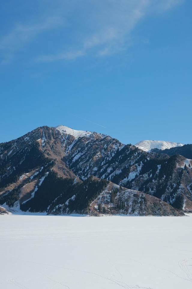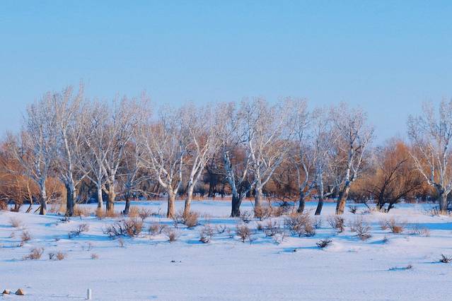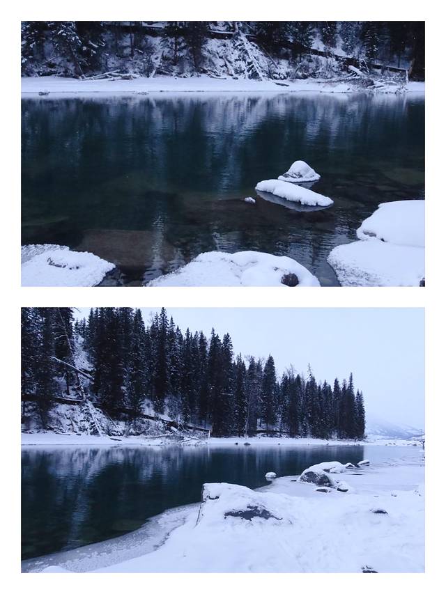 🌟忽然就发现前方有一大片芦苇荡,往里走去是一片湖面,不过跟天池一样已经结冰,白雪覆盖在上面。湖面干干净净没有一处脚印,想必是没有人来过的。