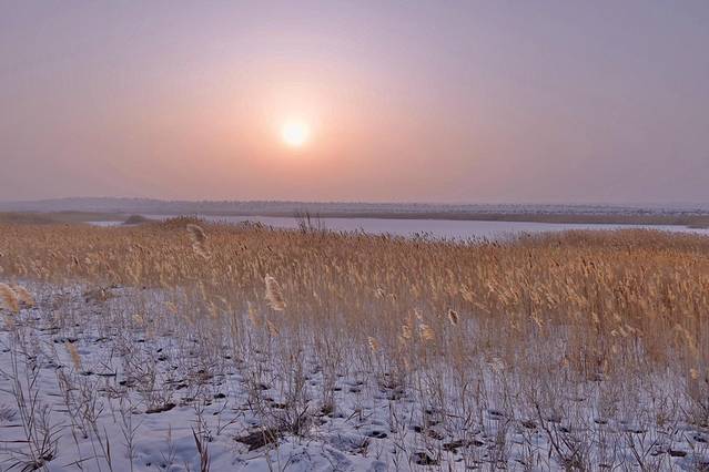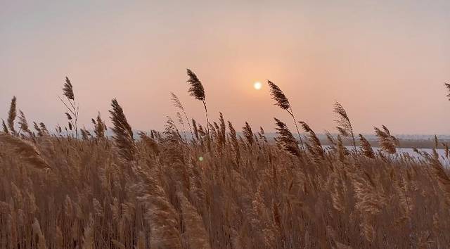 现在都无法形容当时见到它的欣喜以及震撼。夕阳西下,芦苇随风摇摇荡荡,踩在雪里深一脚浅一脚朝芦苇从中走去,看着它在夕阳下摇曳。月牙湾湖面结冰,白雪皑皑一片无人踏足,整个场面显得显的温柔又凄寒。我想它是不需要人欣赏的,就静静的在这僻静之处迎朝送夕,默默的孤独的美丽着。
