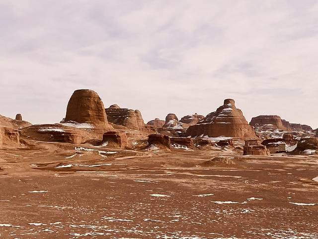 最佳观看时间是傍晚落日时分,夕阳余晖红彤彤的洒在魔鬼城这片土地上,颇为壮观华丽。(虽然我没能停留到傍晚,但是看洗手间里的宣传图的确是这样😌)