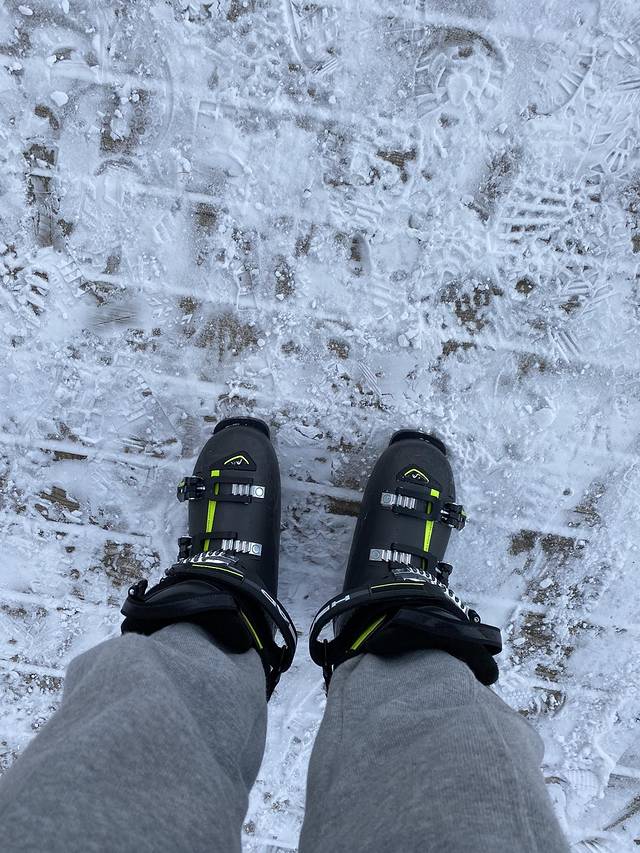 穿滑雪鞋的时候真的费了老劲儿,最终还是在工作人员的帮助下成功把两只脚塞进去。鞋子感觉有千斤重,每走一步都很艰难。